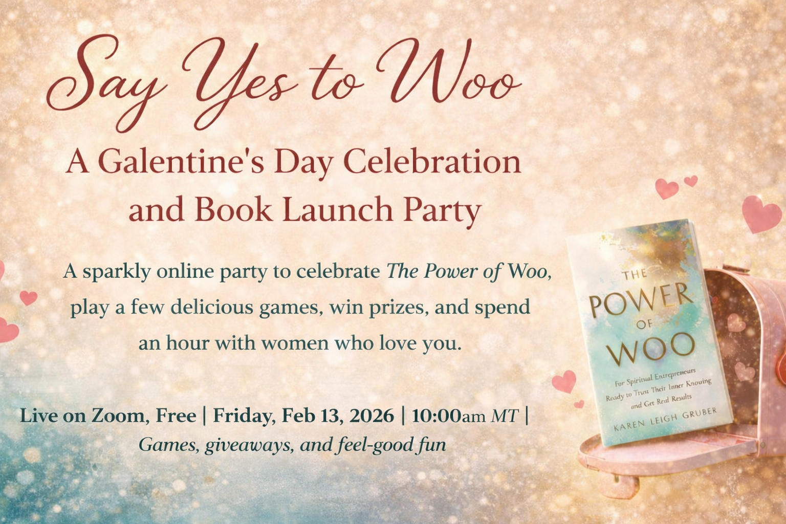 I’m Karen Gruber, author of The Power of Woo. I created this party because I don’t want this launch to feel like a marketing moment. I want it to feel like a celebration. A gathering. A little pocket of joy.